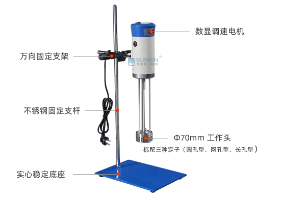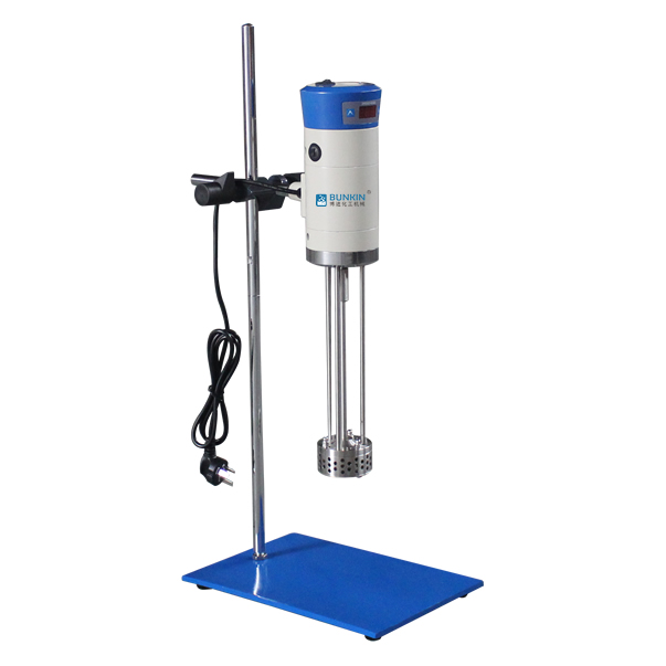 實驗室小型乳化機是為實驗室微量實驗而設計的一款實驗室設備。通過機械外力作用的方法使液-液、固-液物料顆粒粒徑變窄,使一種相均勻分布到另一種或多種相中,達到細化均質(zhì)、分散乳化效果,從而形成穩(wěn)定的液-液、固-液分散體系的狀態(tài)。