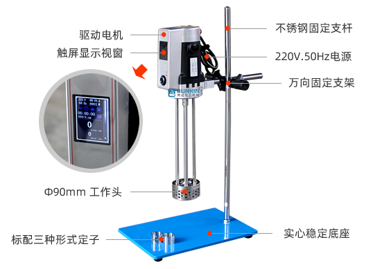 實驗室乳化機強勁的馬達進行高速旋轉使轉、定子之間形成真空,物料從轉、定子上部和底部吸入。強大動能使轉子產生極高的線速度,使物料在轉、定子間隙之間經過強烈的撞擊、破碎、離心擠、液層摩擦、強力剪切之后飛射出去,在多種不同方向力的作用下,產生強大紊流。物料在適量乳化劑和成熟工藝下經過一定時間反復循環解聚、分散、均質、細化、剪切產生穩定乳狀液。