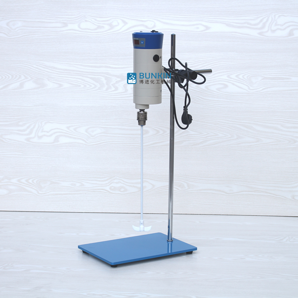 實(shí)驗(yàn)室攪拌機(jī)的工作原理是攪拌槳葉在動(dòng)力機(jī)組的驅(qū)動(dòng)下,沿著固定的方向旋轉(zhuǎn);在旋轉(zhuǎn)的過程中,驅(qū)使的物料用來做軸向旋轉(zhuǎn)和徑向旋轉(zhuǎn)。攪拌機(jī)內(nèi)的物料也同時(shí)在軸向運(yùn)動(dòng)和圓周運(yùn)動(dòng),因而在剪切攪拌和擴(kuò)散攪拌的攪拌形式下能夠有效的對(duì)物料進(jìn)行分散和攪拌。