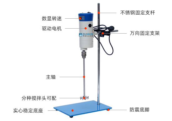 4、小巧設(shè)計(jì) 靜音操作,結(jié)構(gòu)合理,攪拌棒清洗裝拆方便,根據(jù)工藝需要,更換不同的攪拌形式。